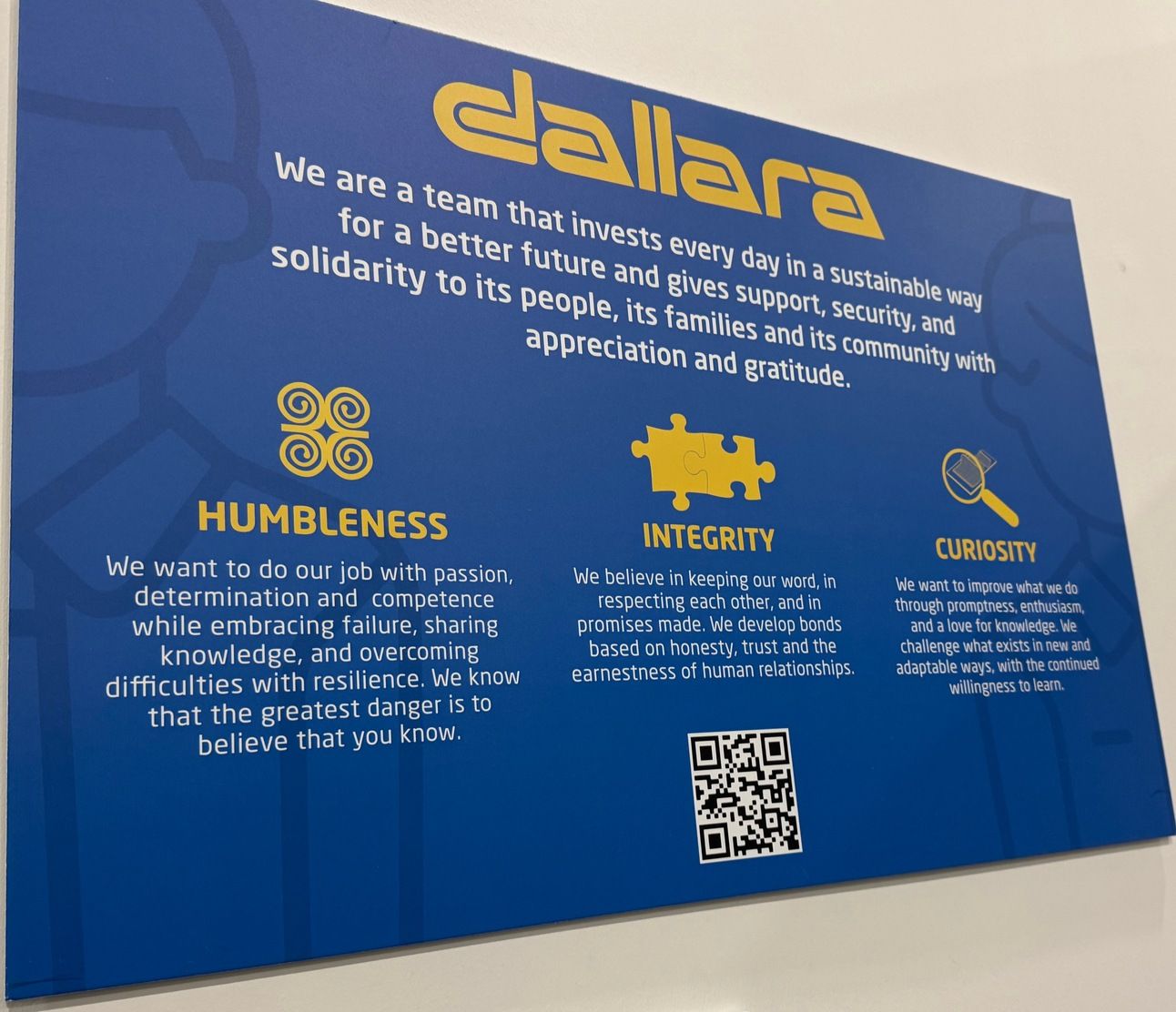 I was impressed by Dallara’s mission and its values as expressed on this poster in the break room. It made me want to work there!