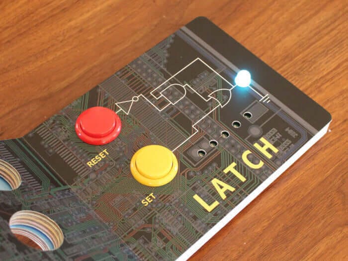 Computer Engineering for Babies and Computer Engineering for Big Babies, both by Chase Roberts, are board books that integrate electronics to explain technical concepts. Both can be found in Maker Shed and they are Dad-tested and approved.