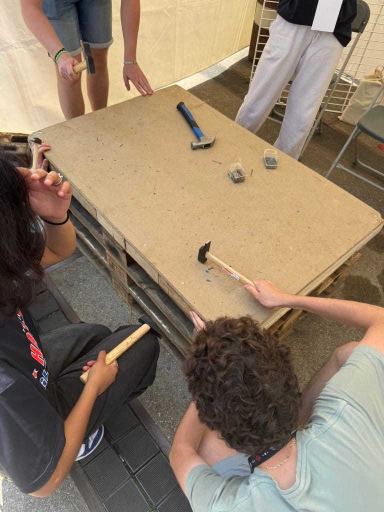 Giant Workshop is Bertrand’s idea and he debuted it first at Maker Faire Paris in 2018. There were maybe sixty people sitting around the long table while a facilitator offered instruction and encouragement. We did Giant Workshop at Maker Faire Bay Area in 2019.
