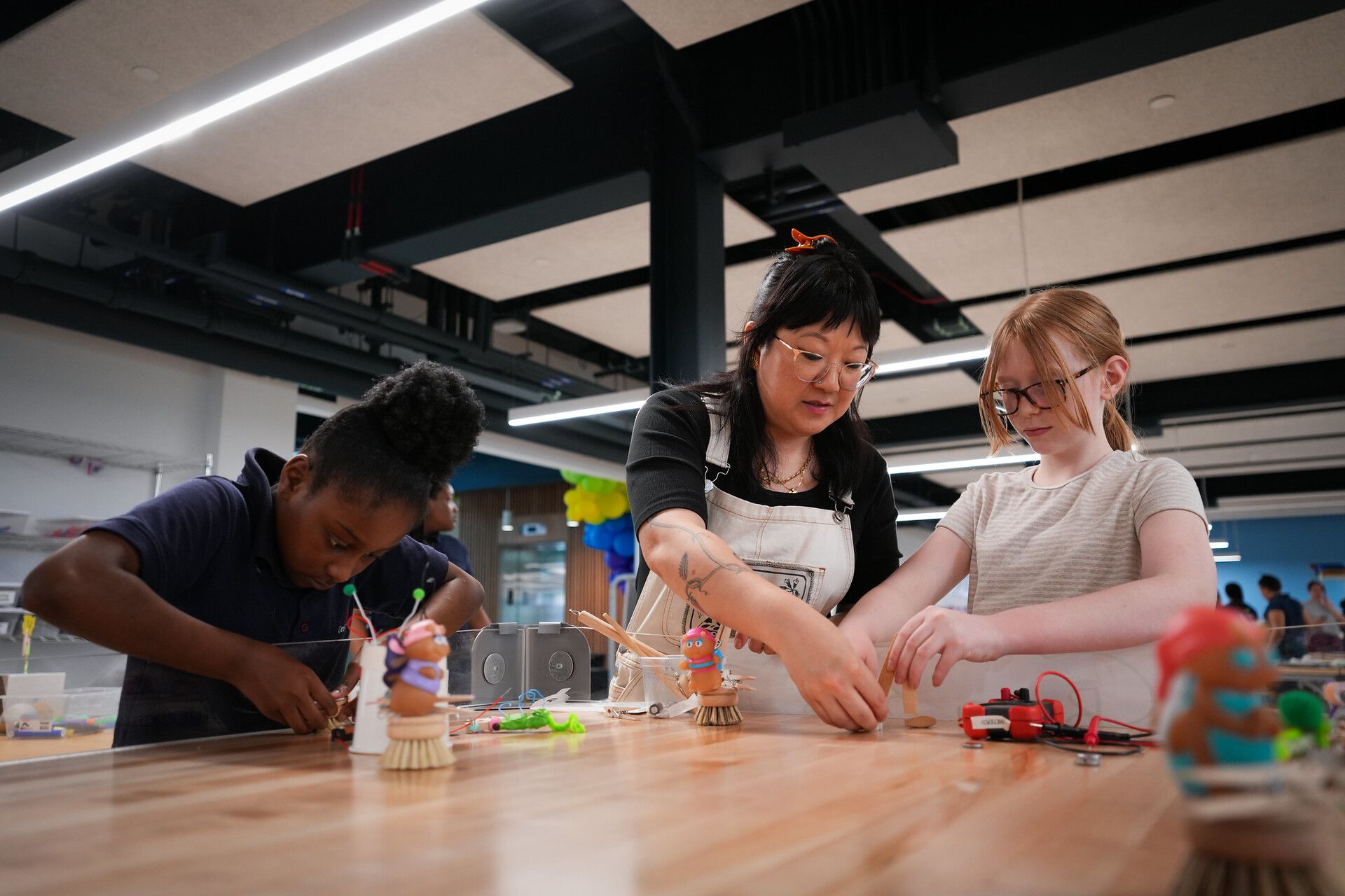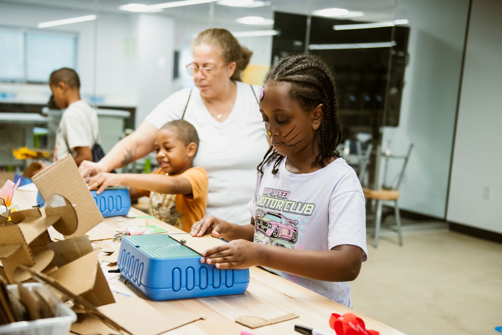 Sarah: Yeah. It was a lot of trying to figure out how can I show people what a makerspace is when the one that we’re building is not built yet. And so the first thing I did was research around where can we go, and visit. Like I could talk all day long, but to actually see a space that’s equipped and [learn] what kinds equipment are there? So I took a few of the leadership team and arranged a tour of Open Works in Baltimore, which is more of an adult community space. They have youth programs, but it’s a very cool, very well-equipped makerspace that does a lot of amazing things for the city of Baltimore. So we went there and got to just tour everything from like welding studios to the quilt-making machine, to all the different kinds of 3D printers. And that really started to solidify for people like what we were setting out to do.