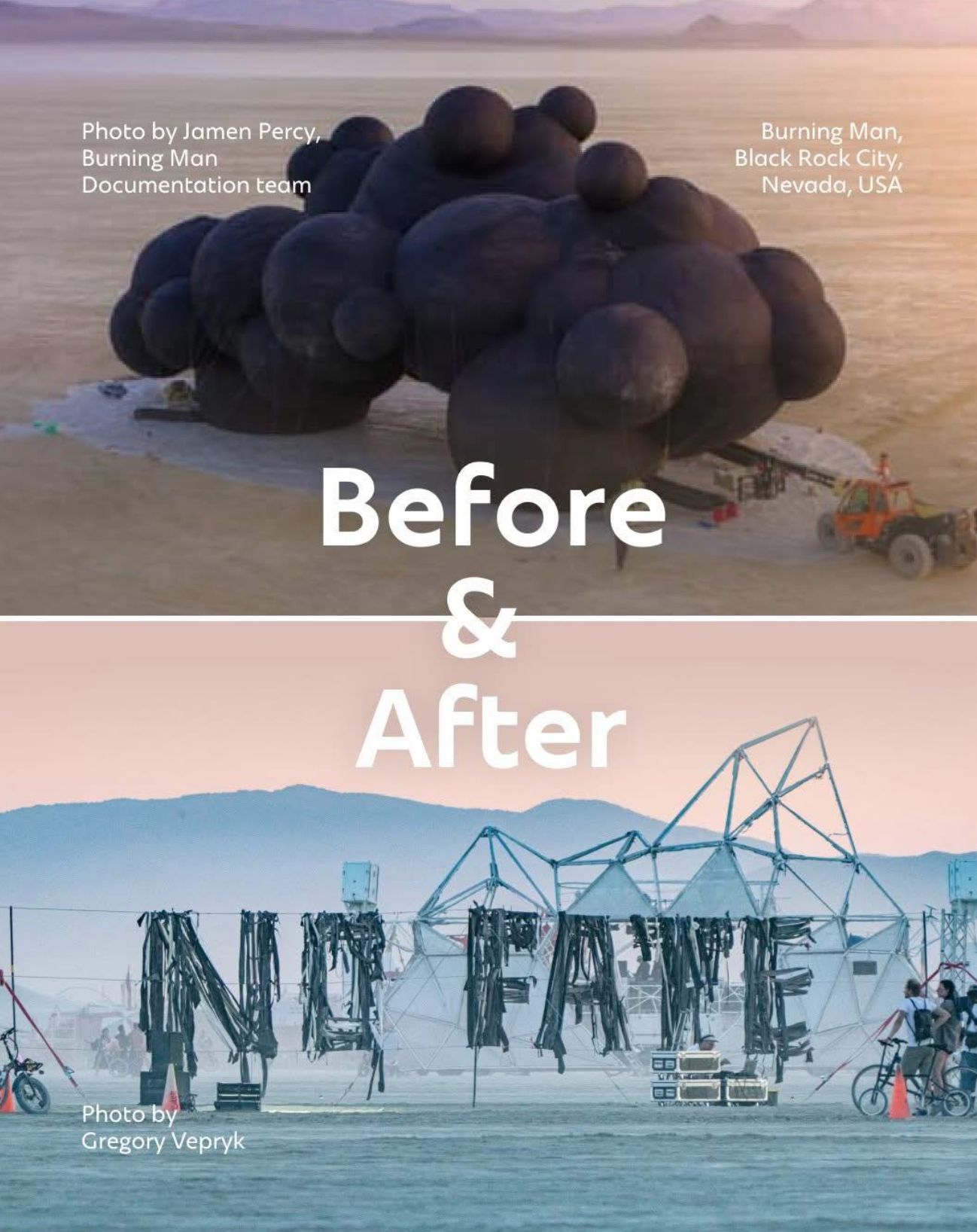 This year’s offering to Black Rock City, NV (where the festival is held) was Black Cloud, a 30-meter-long inflatable storm cloud that flashes with lightning against a nonstop soundscape of real war recordings — missiles, sirens, and explosions. Its urgent, existential message: “The storm is coming for you, too. Get ready.” And, as is often the case in the desert, a storm did come, ripping apart the monumental installation shortly after its erection. What happened next is a testament to the creativity and resilience that defines makers everywhere. They rebuilt, something different, but with an equally powerful message.